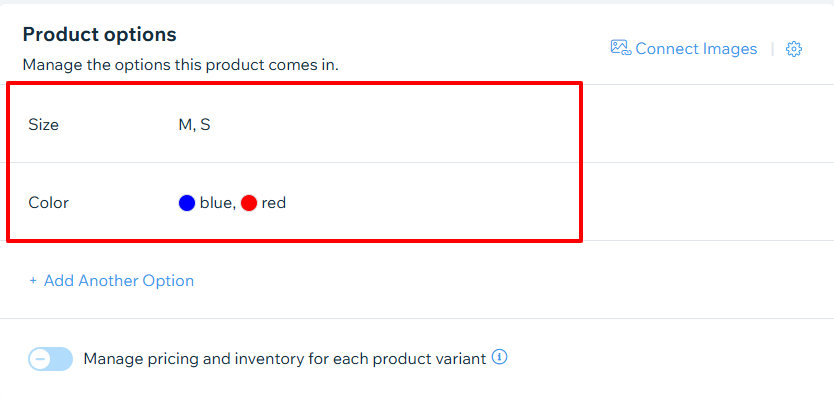 - In WIX, a variation must be tied to an option. For example, a T-shirt with Size as the option and Large, Medium, Small as the values.