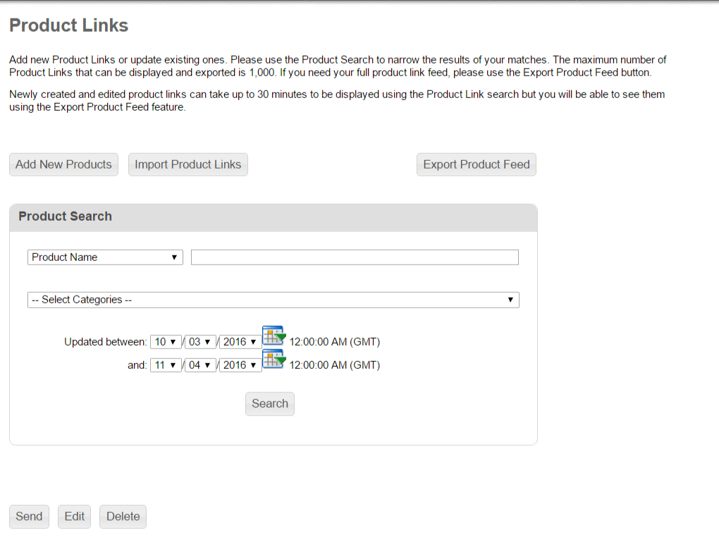 Go to LINKS –> PRODUCT LINKS. Click the “Import Product Links” button (see the image below). This will take you to the screen where you will upload and submit the file.